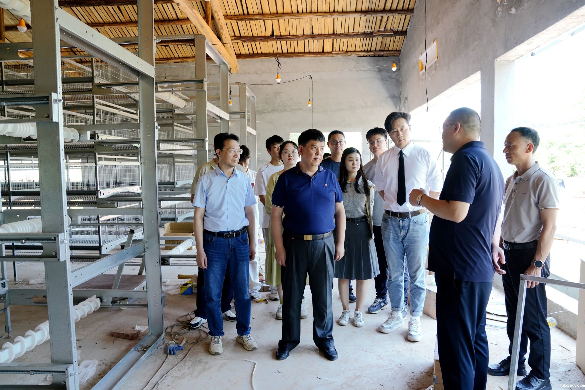 季强一行深入调研丁家山村特色产业。在丁家山村蛋鸡养殖场,细致考察恒温全自动化养殖系统、设备维护流程、疫病防控体系,了解养殖规模、鸡蛋质量及产量等情况。季强指出,要充分发挥学校特色骨干专业的优势,对接厂家提供技术帮扶,切实解决实际问题。季强一行还参观了九江金露生态农业园,考察猕猴桃及果冻橙等特色水果种植情况,探索产教融合助力乡村振兴新路径。